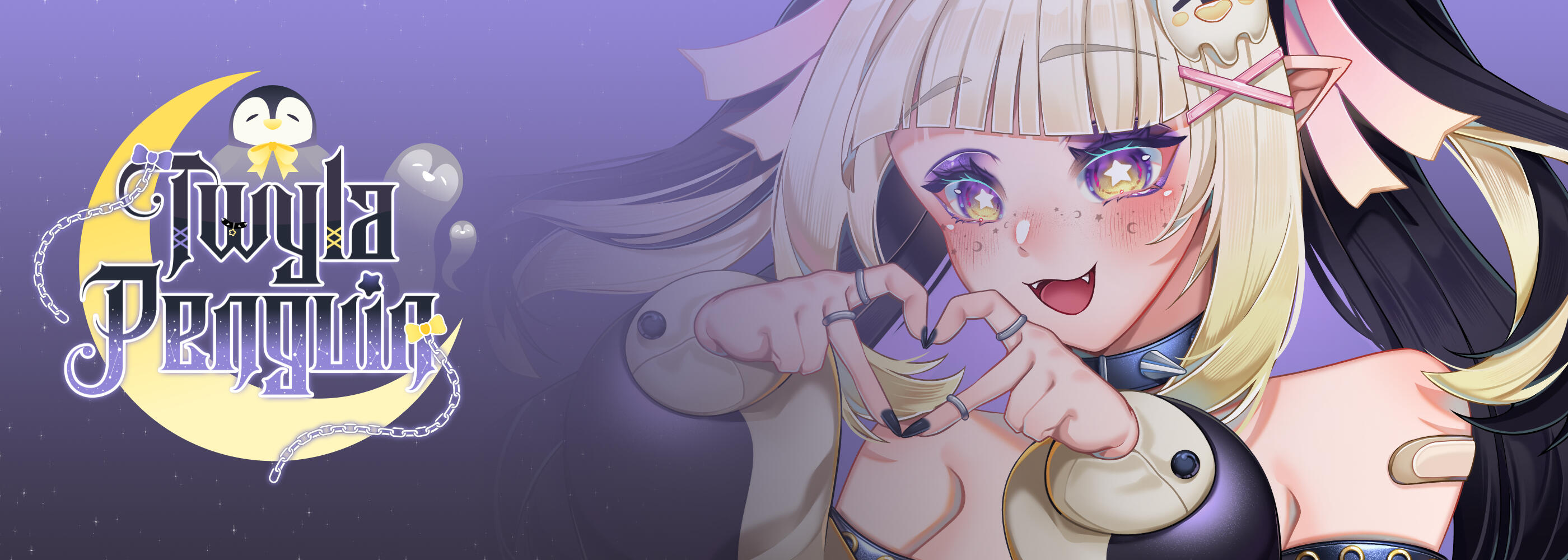 I'm Twyla, half penguin half imp, & somehow I'm the one the Afterice chose to become their spirit guide.I'm a hobby VTuber that plays a variety of games, but you also may find me watching spooky videos, reading, or learning!I am currently pre-debut so my stream schedule is pretty wonky. I have no set timeline, so my streams tend to be surprises. I'm working on slowly cultivating a kind, friendly community prior to debuting.I plan to debut early 2026 with a whole new look & asset refresh - hope to see you there!